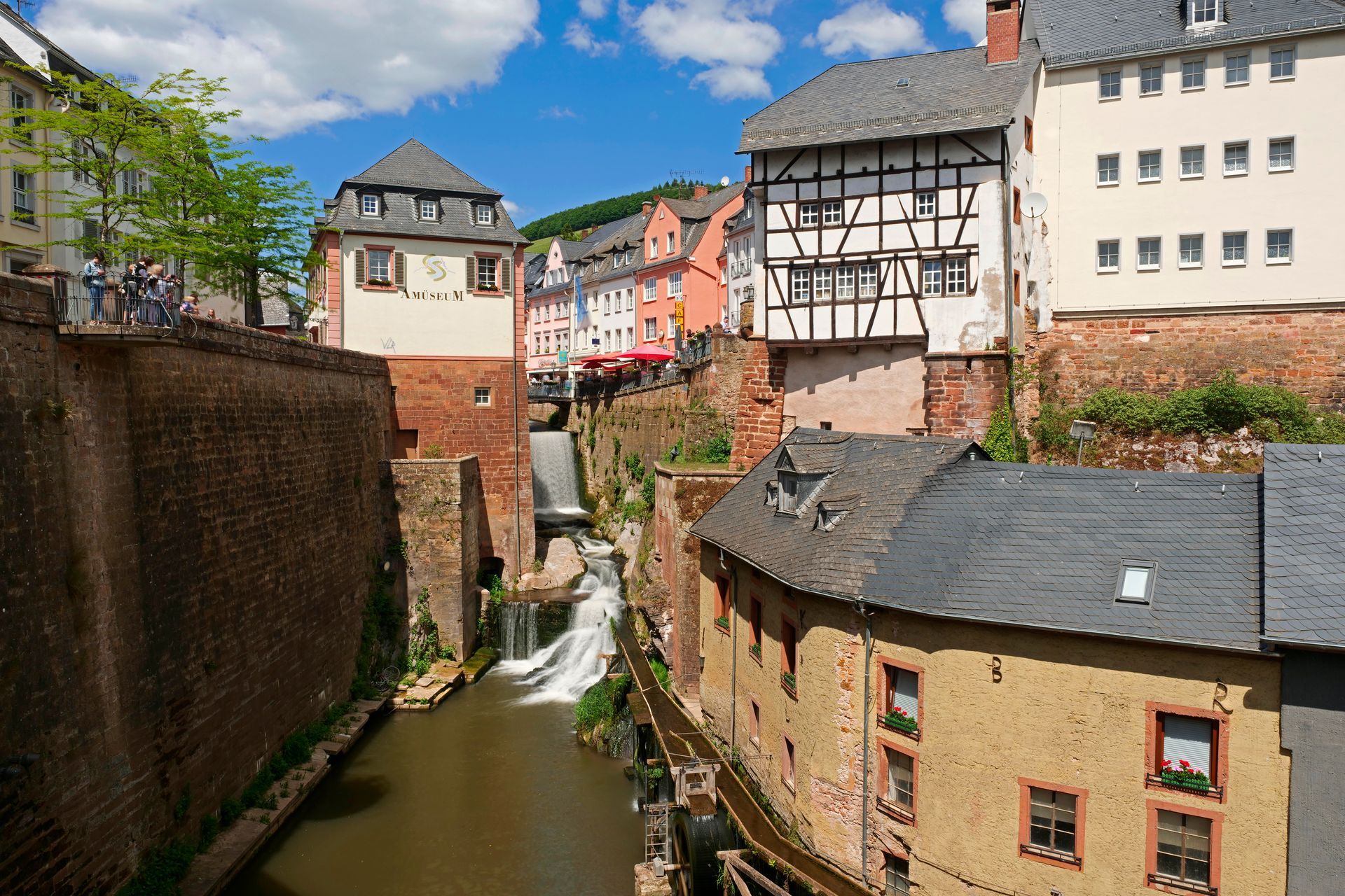 Unterhalb des Burgberges der alten Festung Saarburg liegt die idyllische Kleinstadt an der Saar. Mit dem Wasserfall des Leukbachs mitten in der Stadt hat Saarburg eine einzigartige Attraktion.